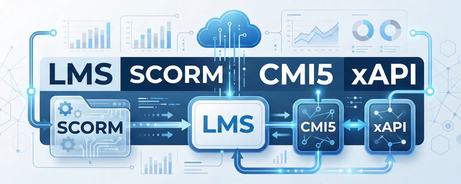 cmi5 - це новітній стандарт, який бере найкраще від обох світів: чітку структуру упаковки курсу від SCORM та гнучку аналітику від xAPI.